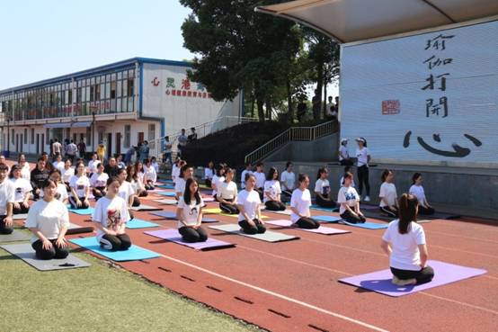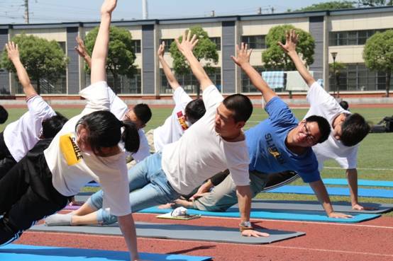 5月23日上午9时心理健康教育与咨询中心举办户外心灵瑜伽活动,师生代表们近百人在西苑足球场参与并体验到身体与心灵的连接。