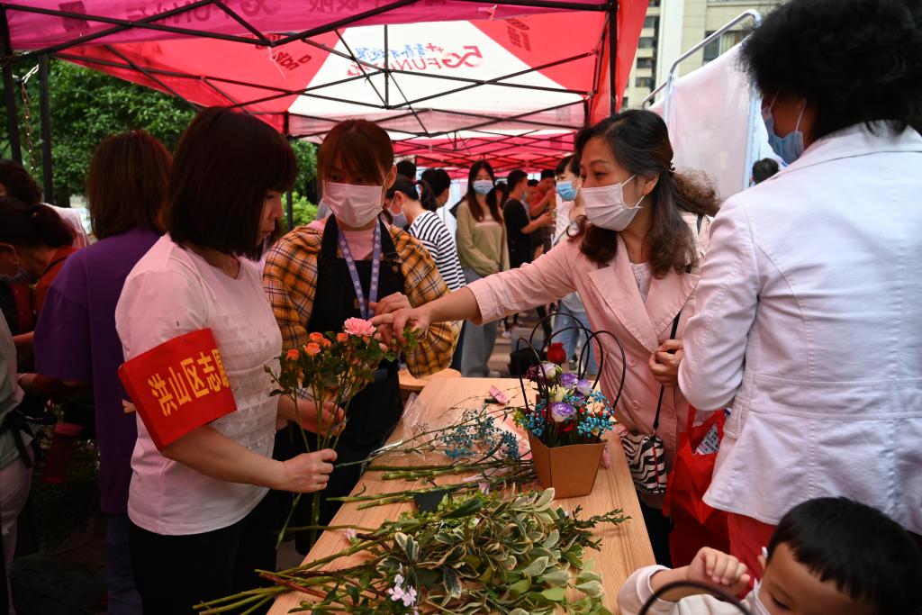 居民朋友参与热情高涨,多个展位前挤满参与体验的群众。大家踱步于各个展位前,欣赏了“扎染”、“插花”过程展示,试吃了学校自主制作的烘焙产品,免费体验了宠物美容造型活动,了解了宠物科学喂养和护理知识,免费品尝了“im体育精酿”和特色农产品葛根粉,加深了对网络安全、新冠疫苗、植物离体快繁技术、液基细胞学技术、农电商直播等知识的认识。
