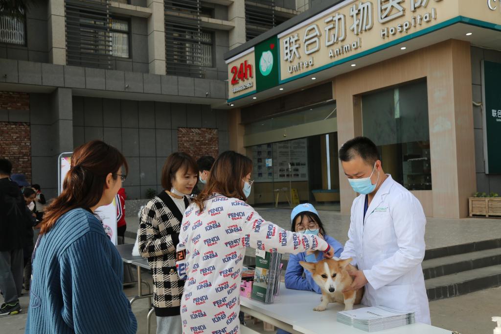 动物科技学院师生发挥专业优势,在学校教学动物医院门口展示了宠物美容、宠物诊疗、烘焙成品、造景等项目。