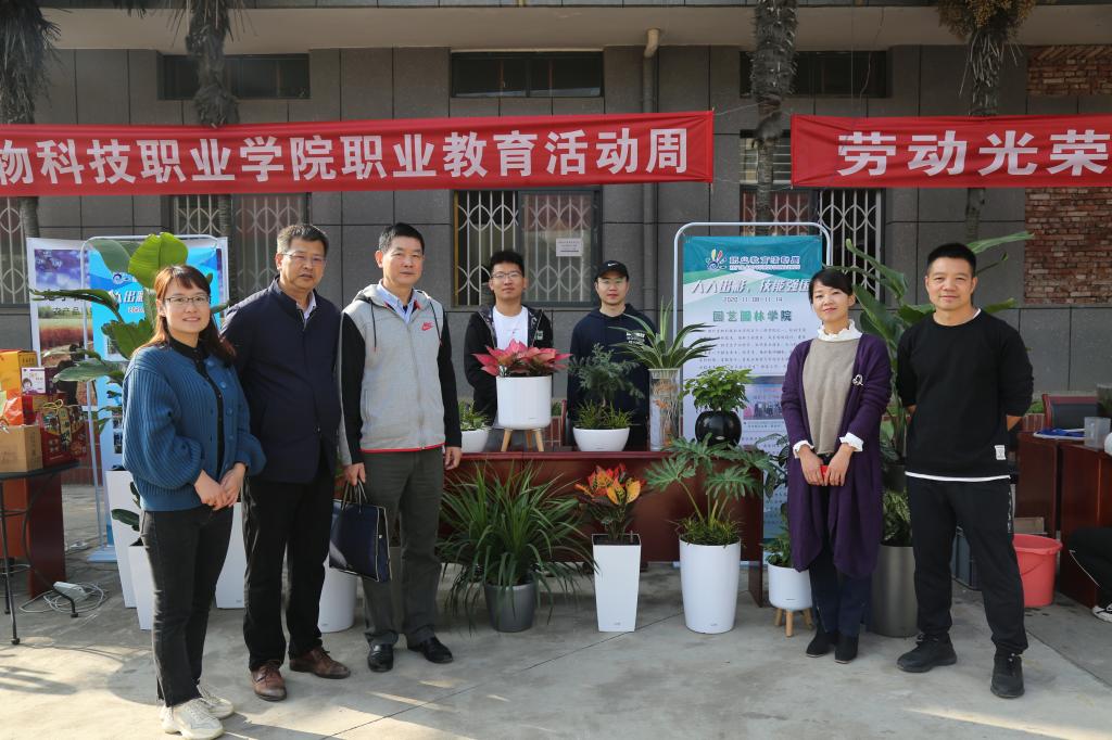 园艺园林学院师生共同完成了水培植物组合盆栽及花鱼共养产品的制作,并在现场进行了展示。