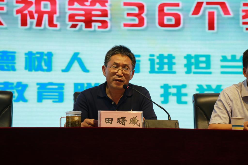 校党委书记田曙曦发表重要讲话。他首先向全体教职工致以节日的祝贺和诚挚的慰问,同时高度赞扬了各党支部在疫情防控中敢于担当、无私奉献的精神。结合习近平总书记关于第36个教师节的重要指示,他提出三点希望,一是切实加强师德师风建设,提高职业道德;二是系统学习教育教学理论,提升职业素养;三是切实加强教学研究,提升职业能力。