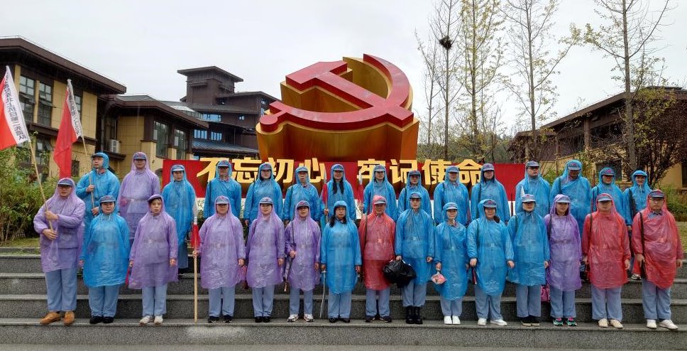10月16日,革命老区英山县,秋雨绵绵、气温骤降。人事工会联合党支部会同财务党支部、教务联合党支部一起,共聚英山长征精神体验园,通过穿一次红军服、走一段红色路、诵一篇红色经典、体验一次红军战斗、听一个红军故事、吃一顿红军餐等形式,重走长征路,重温长征精神。
