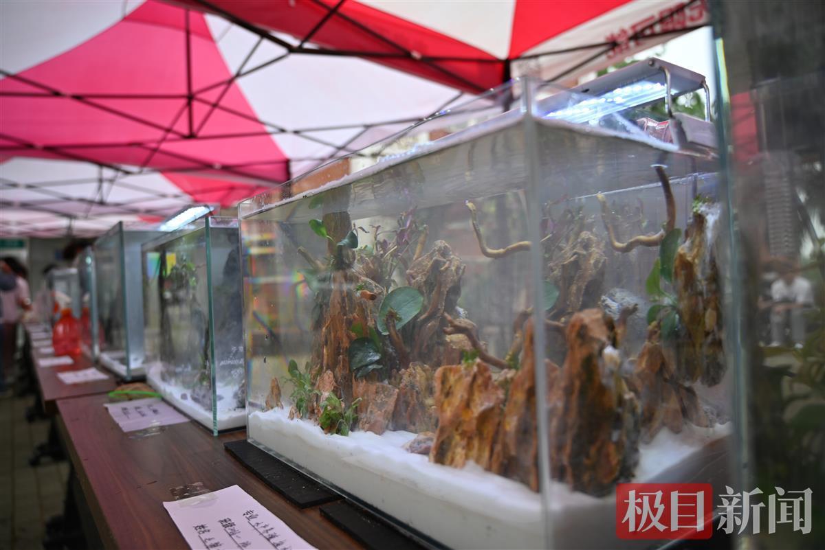 “这份作品里面的石头、前景草、中景草和后景草,共同组成了一份江南山水风格的水族景观。”杨其国说,水族景观设计最讲究观赏性,要像画画一样有构图,做出来的作品风格也各有不同,有些可以做成山水画,有些也能做成热带雨林等充满美感的画面。