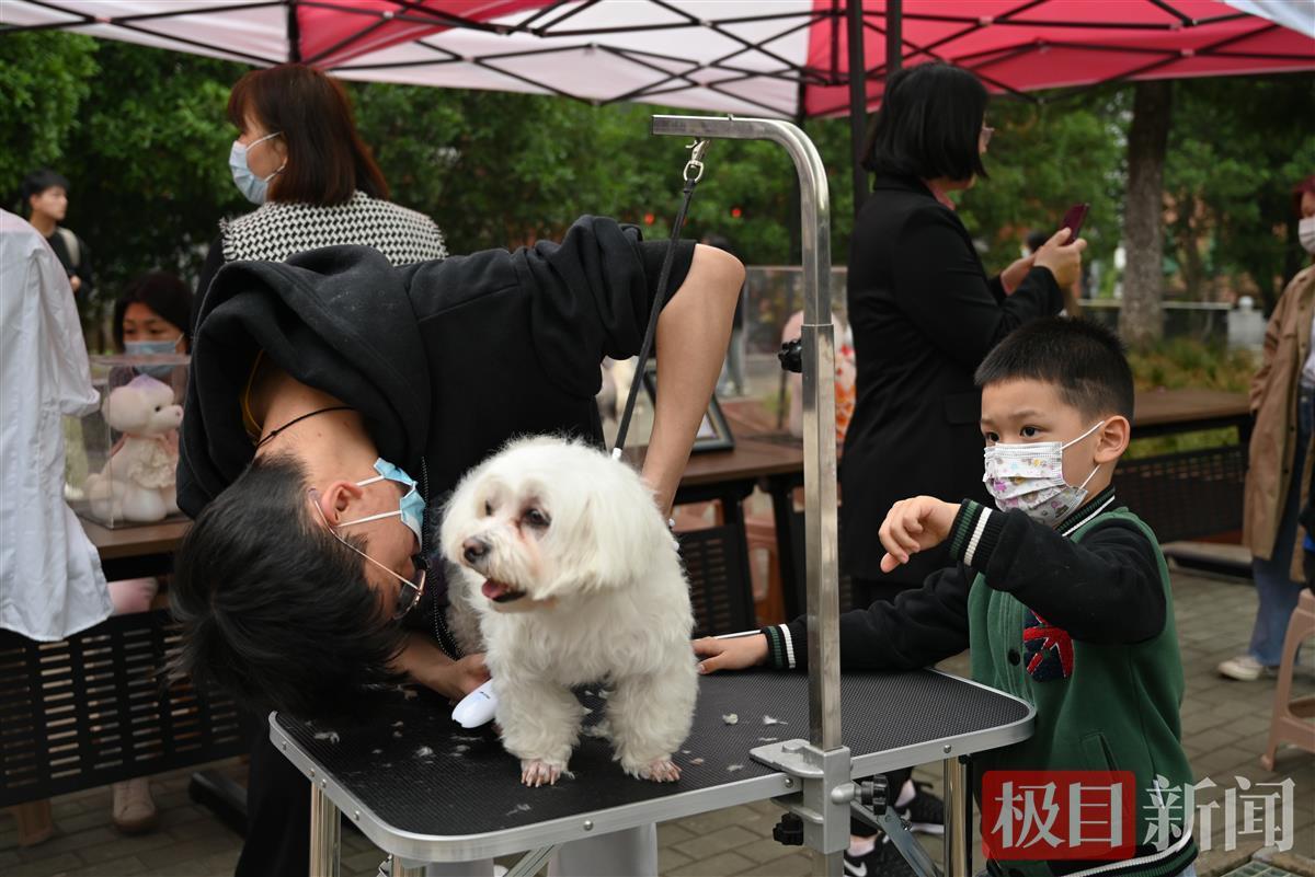 流浪的小狗进了校园,瞬间变成“香饽饽”。每天早晚,都有学生带着遛弯训练,每隔几天,小狗们还能享受一次“专业SPA”。“这些小狗都很温顺,有些甚至还能从它们嘴里抢下食物。”正带着小狗训练的一名学生告诉极目新闻记者,4月中旬,他们才从保护中心将小狗带到学校,虽然时间不长,但仅仅几周时间,小狗已经学会基础口令,接下来他们还会带着小狗学习更多技能。