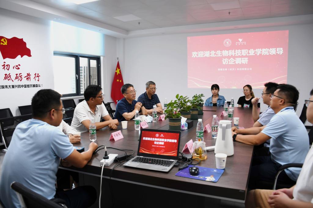 为准确把握《“十四五”生物经济发展规划》内涵,实现学院农业、生物技术类专业特色发展,落实为湖北生物经济发展培养高技能人才的重任。结合《教育部办公厅关于开展全国高校书记校长访企拓岗促就业专项行动的通知》要求,6月16日,在校党委书记田曙曦的带领下,党委组织部部长、经济管理学院院长吴国平,生物工程学院副院长汤文浩,生物制药技术专业负责人方绪凤一行赴普健生物(武汉)科技有限公司考察调研,普健生物董事长秦伏波、总经理鲁亮等参加了交流座谈。