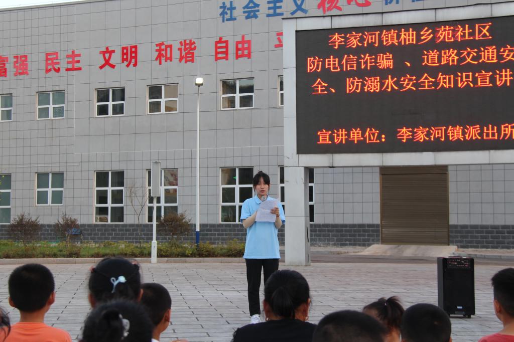 随后,学校暑期社会实践队“润苗筑梦”支教团成员刘英卓做了题为《珍爱生命,提高安全防范意识》的主题发言,她以当代大学生的角度与现场居民朋友分享她对安全的理解,并呼吁大家要珍爱生命,努力提高安全防范意识。活动伊始,李家河派出所民警为居民们讲解了反电诈、交通安全、消防安全等有关知识,并现场发放200余份安全知识手册。