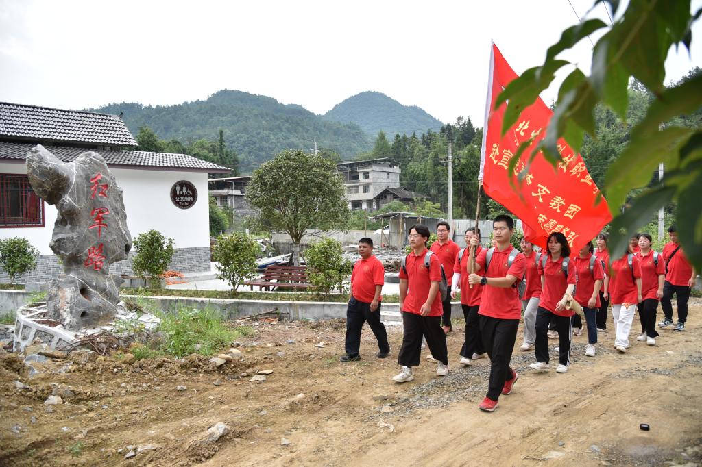 7月27日上午,在宣恩县李家河镇镇政府和im体育驻塘坊村工作队的带领下,学校暑期社会实践队“润苗筑梦”支教团开展了“重走红军路,永远跟党走”主题教育活动。