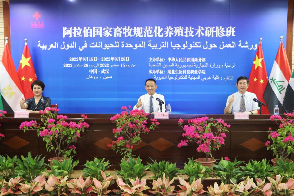 陈青代表湖北省农业农村厅致欢迎辞。他表示,本期研修班为中阿农业领域技术交流和务实合作搭建了平台,也是讲好中阿故事,共谱丝路之歌的有力探索。希望本期研修班能为学员所在国畜牧规范化养殖技术的推广和发展提供有益借鉴,促进交流与合作。